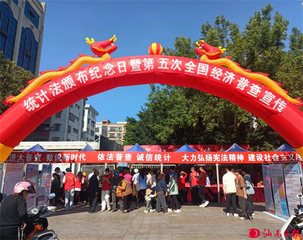 汕尾日报讯 (记者 杨镕墁 文/图)近日,市统计局联合国家统计局汕尾调查队、海丰县统计局开展《中华人民共和国统计法》(以下简称《统计法》)颁布40周年纪念日暨“五经普”宣传活动,以“依法普查,诚信统计”为主题,向广大群众和普查对象宣传统计法律法规相关知识。 活动现场,工作人员通过悬挂条幅、设立宣传台、发放资料、解答疑问等形式,宣传统计法律法规和第五次全国经济普查的目的和意义,让群众了解普查对象、普查内容、普查方式、普查特点等经济普查内容,进一步深入了解统计知识、统计工作,尤其是经济普查服务国家发展的重要作用,提高“五经普”的知晓度、支持度和配合度。活动共发放宣传资料1500多份。 当日,陆丰市统计局联合国家统计局陆丰调查队在陆丰市文化中心同步开展《统计法》颁布40周年纪念日暨“五经普”宣传活动。
