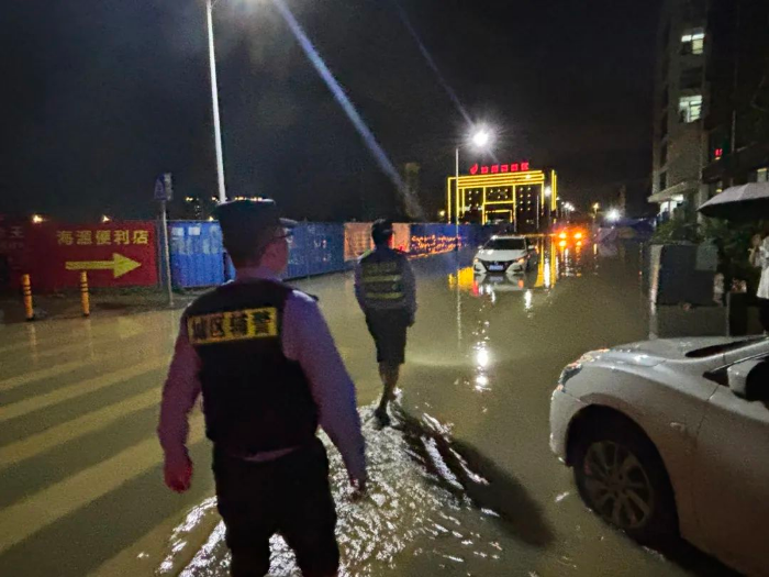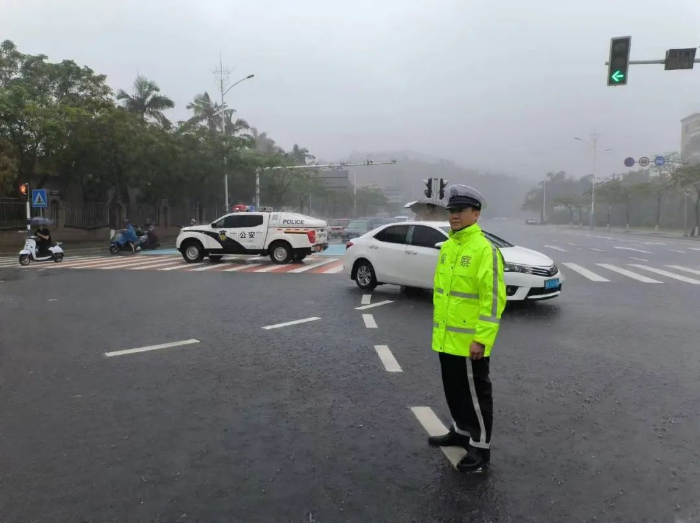 汕尾公安在风雨中护民平安
