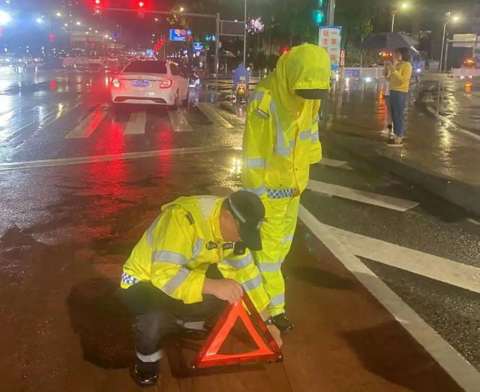 汕尾公安交警顶风冒雨、不畏艰辛,始终挺在抢险救灾和疏导交通的最前线,为人民群众筑起一道“安全网”,用实际行动书写着对职业的忠诚,诠释着人民交警为人民的朴素担当,全力保障汛期期间道路交通安全通畅。