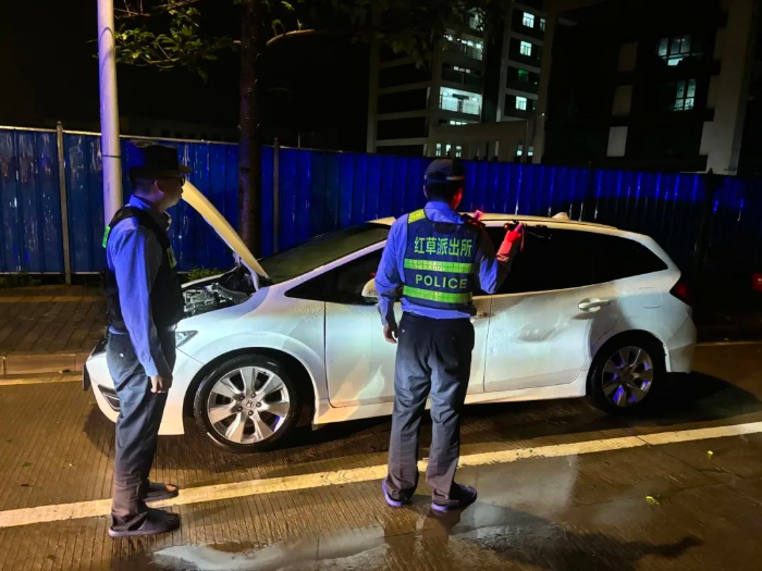 4月28日凌晨2时许,凤山派出所在城区香湖花园附近成功将因车辆熄火被困的女士救出。
