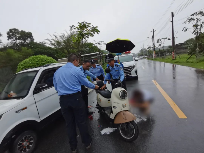 陆丰市局民警及时救助发生追尾交通事故群众。