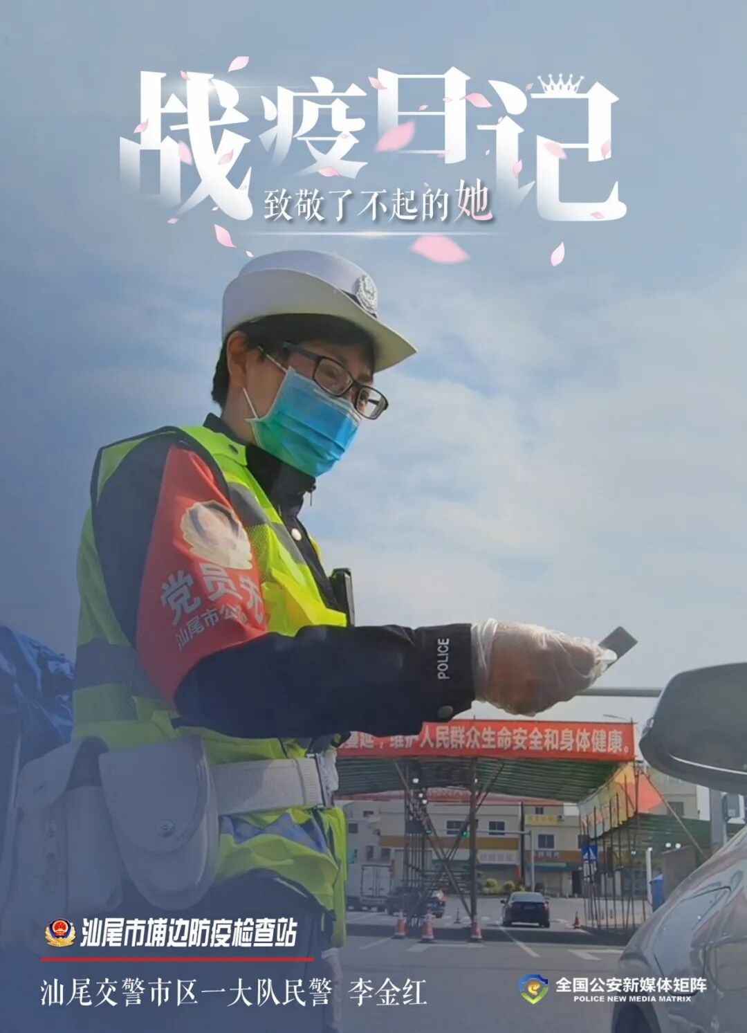 “我请战,我是共产党员,我保证完成任务!”疫情当前,主动请战,这个最强声音发自军人出身的女民警、老党员李金红。疫情面前,汕尾市公安局交警支队市区一大队二级警长李金红用实际行动践行了共产党员的初心和使命,成为汕尾公安抗击新冠肺炎疫情的一面“三八”旗帜。