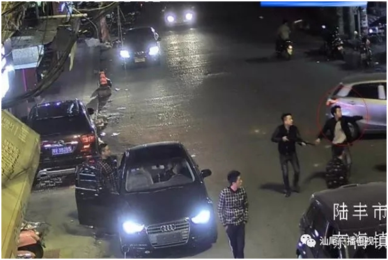 这是发生在2017年1月5日凌晨1时04分,陆丰市东海镇马街广场门口路段,以杨某弟和吴某淮为首的两个恶势力犯罪团伙聚众斗殴的现场视频,因债务纠纷,双方纠集人员相约到该路段谈判,发生言语对骂引发相互斗殴,继而开枪,当场致多人不同程度受伤。
