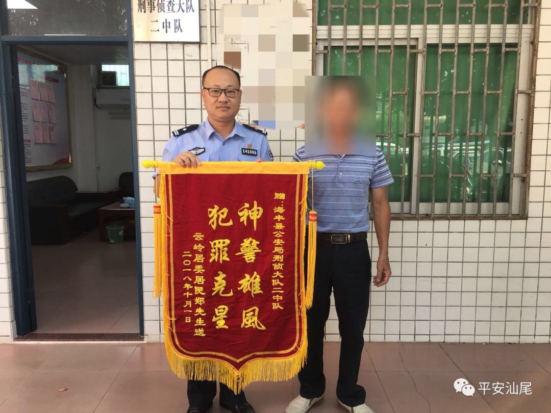 陈女士家人向警方送来写有“神警雄风 犯罪克星”字样的锦旗