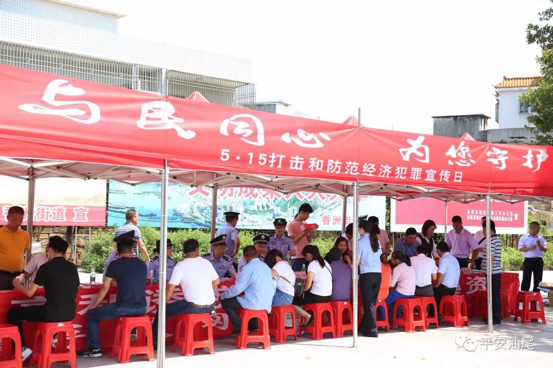 5月12日,市公安局、城区公安分局联合在城区香洲街道城西社区坎下城广场举办防范经济犯罪解答及现场咨询活动。市金融局,城区金融局,市人民银行,市烟草专卖局等单位联合开展活动。