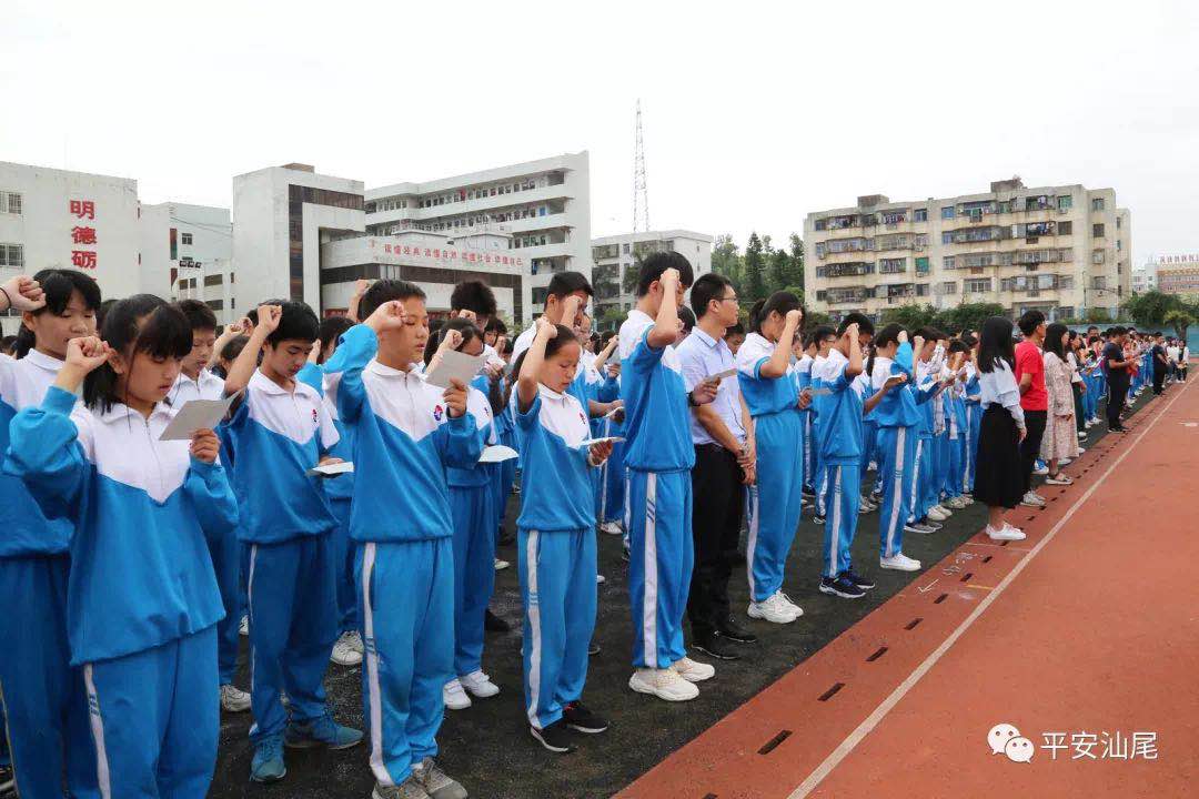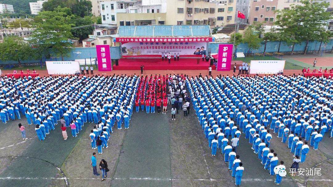 “我是中华民族的儿女,不忘耻辱,坚决与毒魔作斗争,珍爱生命,拒绝毒品……”一句句嘹亮的禁毒宣誓口号在新城中学广大的操场响起。5月22日上午,由汕尾市禁毒办、城区禁毒办主办,市教育局、城区教育局协办的“携手禁毒 护航青春”2019年汕尾市禁毒宣传进校园系列活动启动仪式在城区新城中学隆重举行,汕尾市禁毒办主任、市公安局副局长李小鹏,市教育局副调研员林小平,市禁毒办副主任黄木添,区委副书记、区政法委书记郑良斌,副区长、区公安分局局长叶伟健,区教育局局长陈小凯,区公安分局副局长卓汉胜等领导以及城区60所学校校长、新城中学2000多名学生和师生志愿者代表参加了启动仪式。