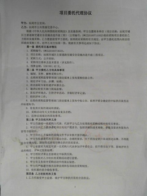 二、采购项目名称:汕尾市城区主要道路交通安全设施改造升级工程。