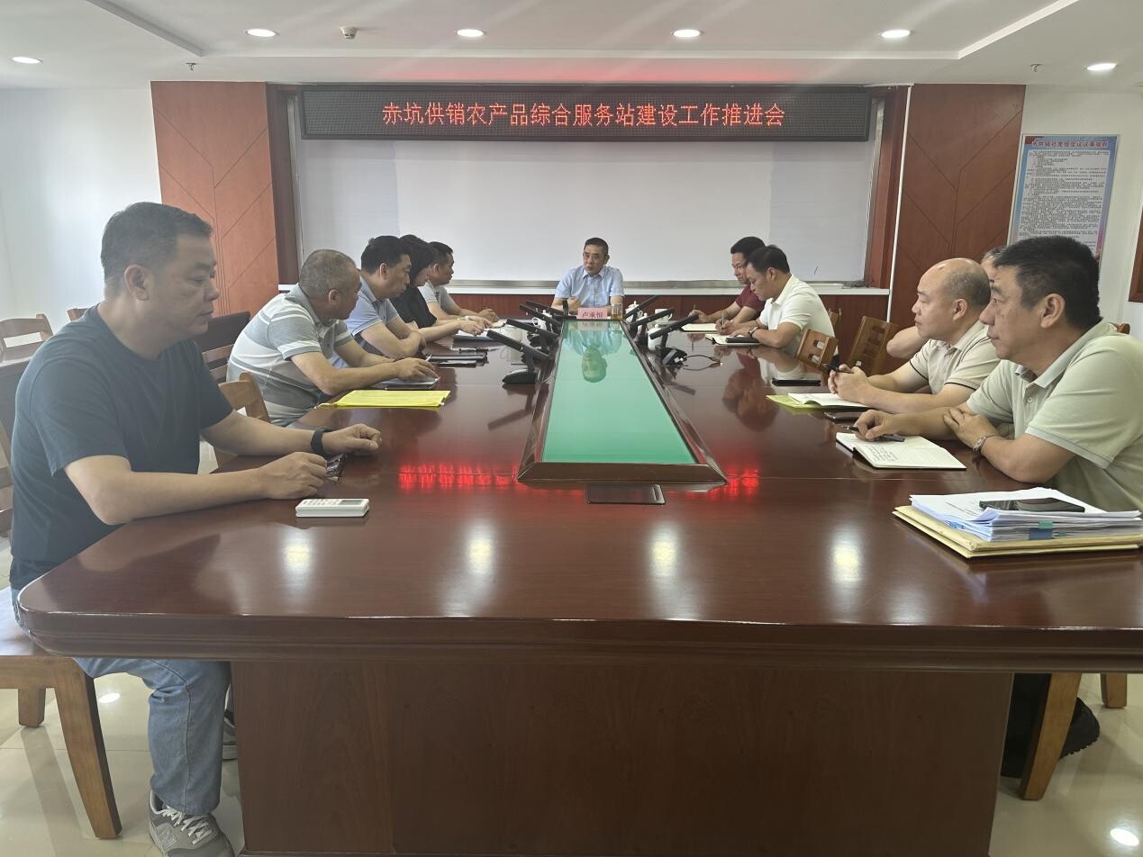 为加快推进我市“生产、供销、信用”综合合作试点工作,研究解决赤坑农综站建设用地问题,5月15日,市供销社主要领导卢承恒主持召开赤坑农产品综合服务站建设工作推进会,城区供销社、海丰县供销社、市新供销商贸有限公司等主要负责人参会。