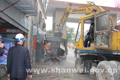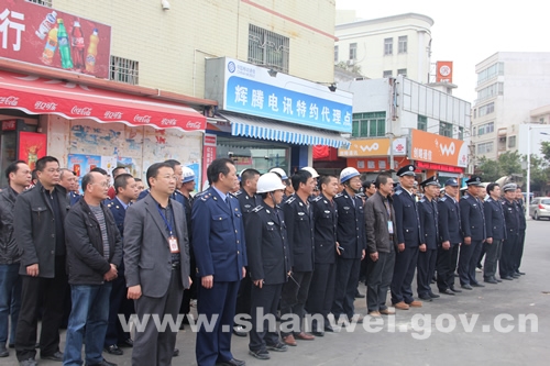 1月9日下午,市城管局联合市规划、国土、环保、工商、公安、交警、城区政府、香洲街道及当地村委等有关部门对市区城南路进行大规模整治,清理拆除各种占道经营和乱搭建行为。副市长邹广到现场检查指导工作。