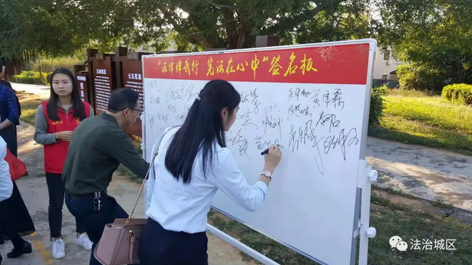 随后,开展游园学宪法活动。全体人员在区委副书记、政法委书记郑良斌的带领下,参观了城区法治文化主题公园,近距离地接受法治教育,在潜移默化中接受法治文化的熏陶。