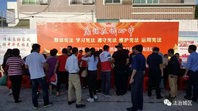 在第五个国家宪法日到来之际,12月4日下午,汕尾市城区在城区法治文化公园举办“12·4”国家宪法日宪法宣传咨询暨“游园学宪法”活动。区委副书记、政法委书记郑良斌,区人大常委会副主任王声效出席活动,区普法成员单位主要领导、分管领导和各镇(街道)宣传委员、司法所负责人,东涌村(社区)“两委”干部,东涌中学学生等共600多人参加活动。