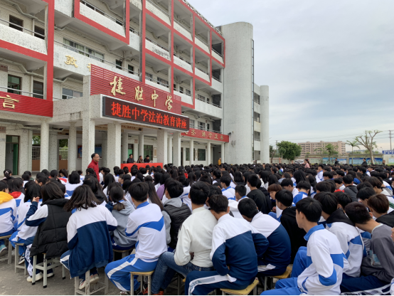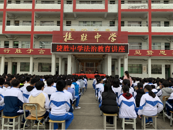 2018年12月10日下午,汕尾市城区司法局、捷胜中学联合在捷胜中学举办法治讲座。司法局副局长、普法办副主任胡家为应邀为该校900多名师生上法治辅导讲座。