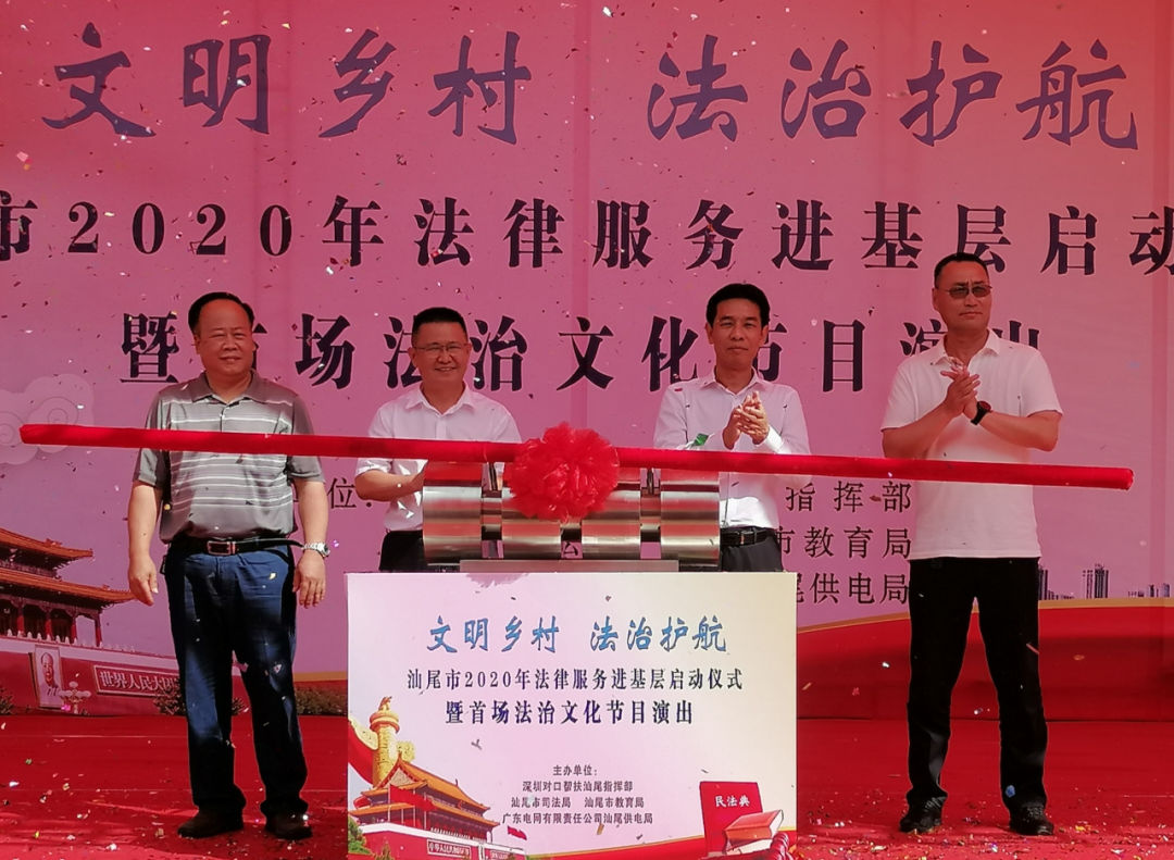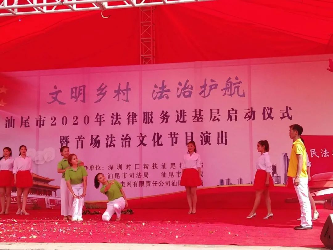 6月10日下午,汕尾市司法局联合深圳对口帮扶汕尾指挥部、汕尾市教育局、广东电网有限责任公司汕尾供电局主办的2020年法律服务进基层活动启动仪式暨首场法治文化节目演出在陆丰甲西镇西山村隆重举行,活动以“文明乡村·法治护航”为主题,为当地干部群众提供了一场休闲、学法、娱乐为一体的“法治文化大餐”。
