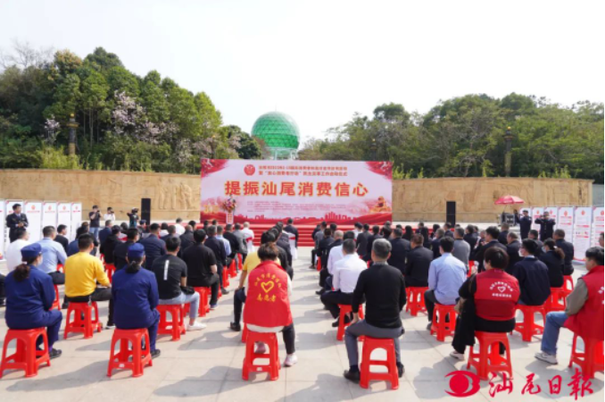 3月15日,市消委会、市市场监管局联合市公安局、市住房建设局、市邮政管理局、市烟草专卖局、人民银行汕尾中心支行、市法学会、市酒类行业协会等单位,在市区玉台山慈云公园举行“3·15 ”国际消费者权益日宣传咨询活动暨“放心消费粤行动”民生实事工作启动仪式,全面展示我市消费维权举措和成果,提升广大消费者依法维权意识和经营者诚信经营意识,推动消费在安全轨道上实现高质量发展,营造汕尾良好的营商环境。副市长温树斌出席活动并致辞。