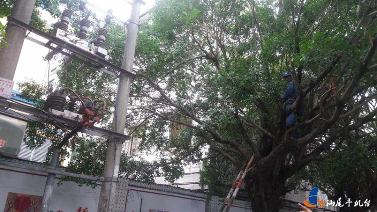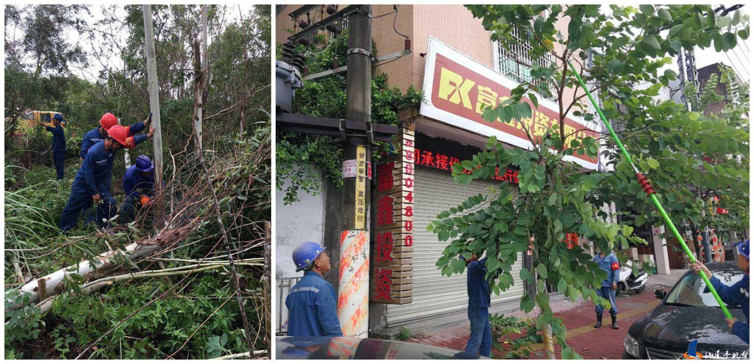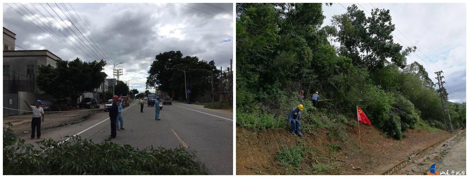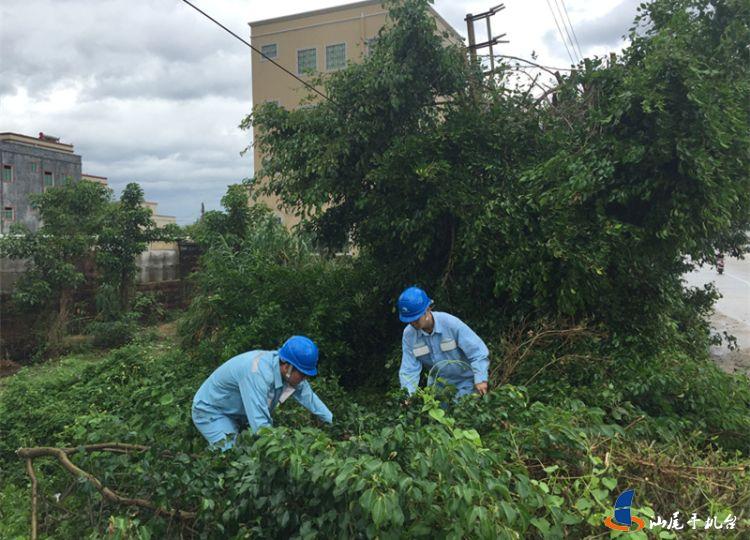 该局按照汕尾市委书记石奇珠检查汕尾供电局防风工作时的指示精神,市三防办部署要求切实做好台风期间供电线路安全运行,各地各单位立即对输电线路保护区内存在安全隐患的树木专人负责落实清理。截止3日上午,市三防办督办21处树障黑点、共20.32亩树木均已全部得到清理。在位于陆河河口镇剑门村附近的500千伏榕茅甲线N151-152号塔线行下,10名抢险人员使用电锯紧张作业,迅速将1.5亩树木清理完毕。然后又马不停蹄的赶往陆丰西南清障。在海丰,供电抢险人员和“玛娃”赛跑,冒着大雨赶往清障地点。到达赤坑茅湖附近的220千伏桂海线16-17号塔区域,清理树障约4.5亩。