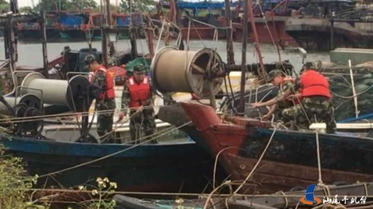 9月3日下午,汕尾边防支队甲子边防派出所官兵再次前往渔港码头沿岸线进行巡逻,并对停靠的避风船只缆绳进行再次加固,防止台风过境时出现船只因摇晃问题被吹出外海。