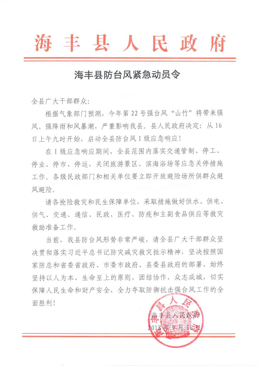 海丰县防台风紧急动员令