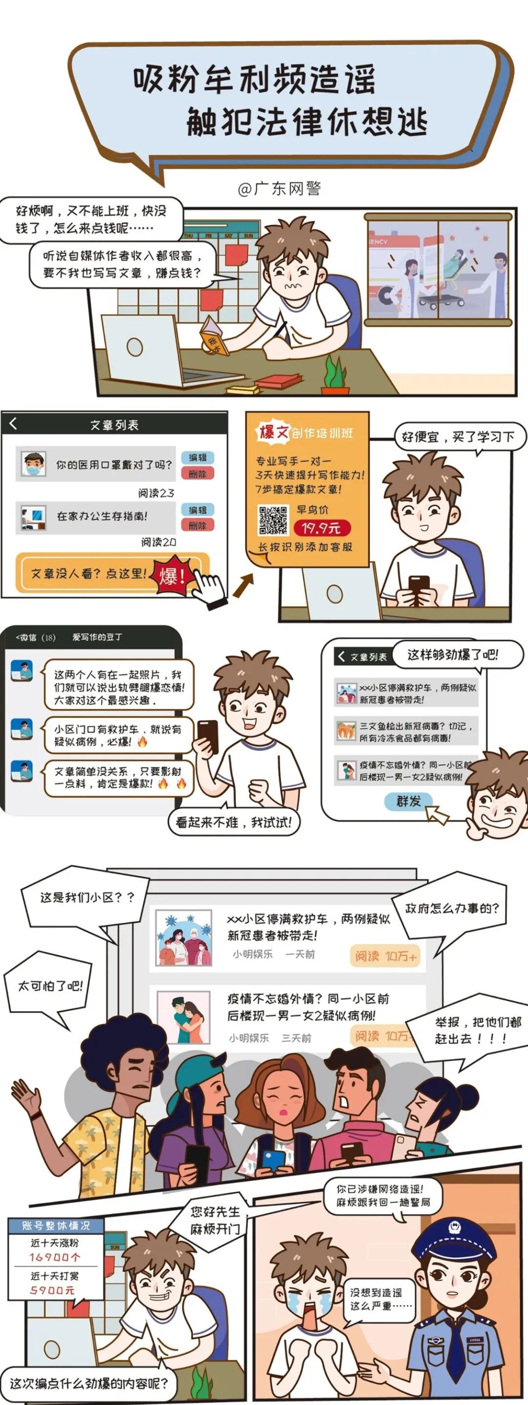 广东网警温馨提示:网络无疆、言论有界。自媒体从业者要遵守职业道德,切勿为了吸粉赚流量恶意造谣传谣;广大网民要明辨是非,不轻信网络未证实言论。
