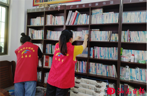 志愿者在整理农家书屋。