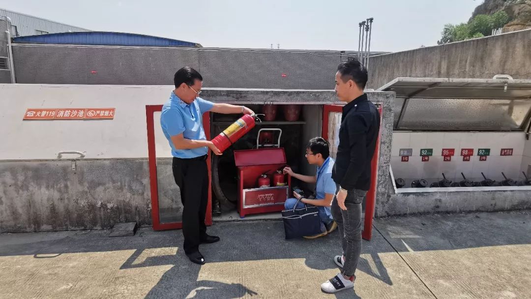 李剑锋局长一行采取现场考核的方式,重点检查了加油站主要负责人、安全管理人员和从业人员依法履职情况,随后现场检查了加油区、卸油区等关键部位的安全生产情况以及相关台账资料,并随机抽查了加油站卸油工作的视频资料。在品清加油站,发现该企业2号加油机灭火器失效,加油员未能熟练使用灭火器以及卸油员在卸油时违反操作规程使用手机等隐患问题;在新湖加油站,发现该企业未按规定召开安全会议以及卸油区监控视频故障无法使用等隐患问题。执法人员立即行动,依法责令企业限期整改,查处安全生产违法违规行为。