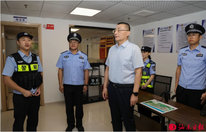 逯峰还深入马宫街道金町滨海旅游区社区治理中心、游客服务中心,看望慰问坚守岗位的工作人员、志愿者,详细了解基层治理、旅游安全等工作情况。他强调,要牢固树立“群众过节、干部过关”思想,加强值班值守,严格落实领导带班、24小时在岗等值班制度,及时快速高效处置各类突发事件。要提升旅游服务保障,压紧压实安全生产属地责任、行业监管责任和企业主体责任,加强旅游景区安全隐患排查整治,落实好各项防护措施,强化市场监管,维护市场秩序,为来汕游客提供安全舒适的旅游环境。