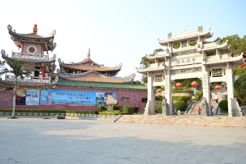 凤山祖庙旅游区位于汕尾市区东南方品清湖畔,景区面积23万平方米。凤山、鼎盖山、屿仔山与湖面22平方公里的我国最大泻湖“品清湖”形成独特的“三山一湖”滨海风光。现是国家AAAA级旅游景区、全国文明单位、中华妈祖文化交流协会首届常务理事单位、广东省中华传统文化传承基地。 景区拥有凤山祖庙、天后阁等古建筑群以及凤仪台、妈祖圣迹馆、渔家风情馆、戏剧面谱园、相思园、妈祖文化广场等景点。凤山之巅高16.83米的妈祖石雕像,是汕尾市区的标志性建筑。登临凤仪之台,瞻仰妈祖神采,近观古镇新姿,远眺浩瀚南海,湖光山色尽收眼底。 历史沿革 明朝中后期,在汕尾尚未形成渔港之前,在品清湖生产作业的渔船日益增多,为满足渔民和沿海居民信仰妈祖的习俗,祈求风调雨顺、合境平安,一些居民、渔民在品清湖畔凤山之麓建立了一座简易的竹棚小庙宇,供奉妈祖的香火日益鼎盛。 1994年1月,著名社会活动家、中国致公党卓越领导人黄鼎臣先生亲自为凤山妈祖庙题词: “先有凤山祖庙,后有汕尾港。”这是黄老根据中国港口城市一般发展规律和汕尾港的实际情况,对汕尾凤山妈祖庙的历史作了甚有说服力的佐证。现祖庙大门的石刻匾“凤山祖庙”落款是:清乾隆壬戌季秋题,足以见证凤山祖庙的扩建历史。整座庙宇采用具有粤东建筑风格的三进两院布局,面阔三间,风火式山墙,歇山顶,称“拖叠抱印”。主体建筑面积840平方米,坐落于凤山前的小平原。这座古朴典雅的新庙宇落成之后,其影响力不断扩大,在粤东乃至岭南地区颇有名气。 为弘扬妈祖文化,发展第三产业,1992年2月经广东省文管委批准决定重修凤山祖庙并扩建天后阁。1994年12月竣工,新扩建的“天后阁”,包括钟楼、鼓楼、两旁庑廊、祭台和拜埕五个部分,占地面积3027平方米。主体建筑采用清代古建筑风格的“重檐插翼歇山型”,面积740平方米,石木结构。高悬于殿宇中心位置的门匾“天后阁”三字,遒劲俊逸,是著名书法家启功先生所题。“钟楼”、“鼓楼”为中国民俗文学大师钟敬文所书。妈祖石刻“天后圣母”四字,是我国著名文学家冰心女士所题,人们誉为“冰心石”。石像前还有中国国民党革命委员会副主席屈武题写的“世界和平颂女神”的石碑,字字潇洒苍劲。1997年全国政协副主席、中科院院士钱伟长到凤山祖庙时,为景区的无限风光赞叹,挥毫题下“凤仪台”。2004年被汕尾市人民政府定为“汕尾市文物保护单位”。2005年又修建了凤山妈祖文化广场,是汕尾市继妈祖石雕像之后的又一座标志性建筑物,广场占地面积近6万平方米,广场中心舞台占地2520平方米。 凤山周围有八景:"凤岗向斗"、"红娘穿线"、"民船舞剑"、"鹭鹚叠翠"、"鲤鱼瀑布"、"银湖夜游"、"凤山圣母"、"古庙新姿",整个旅游区构成一幅湖光山色、多姿多彩的连绵画卷。 妈祖圣迹馆 妈祖圣迹馆,是我国第一个介绍妈祖生平、传说、圣迹的艺术馆,全面介绍了妈祖被神话的演绎过程。 宋太祖建隆元年(公元960年),福建莆田湄洲湾一户姓林的人家诞生了一个女婴,名叫默娘。相传16岁时,她与女伴在园中游玩,对着一口古井照妆,忽见一手捧铜符的神人在井中出现,众女伴都吓跑了,只有她迎上去,从此,她就有了灵异本领。21岁那年,莆田大旱,父老乡亲请她求雨,率众祈雨后,果然雨下,丰收的人们对她非常感激。相传莆田西北有二精作怪,百姓不堪其苦,向她求助,妈祖施法收服,从此妈祖传说中就有了观雨听风的千里眼和顺风耳二位神将。妈祖能医识药,对病者求助无不尽心尽力,不分贫富贵贱,人们更加感念这位善良的姑娘。妈祖还曾“焚屋引航”:一个夜晚,海上掀起风浪,有渔人出海未归,妈祖点燃了自家的茅屋,熊熊大火让遇险的渔船找到了航向,渔民平安归来。妈祖这种舍己救人的高尚品德,是人们信奉妈祖文化的基础之一。 公元987年,农历九月初九日,妈祖辞别家人,身着盛装登上湄洲峰,不久,人们看到山上彩云四合,恍闻空中乐声悠扬,銮舆翠盖,仪仗幢幡纷至,簇迎妈祖缓缓升天而去,一时间,万道霞光渲染海天,瑰丽壮观,时年妈祖28岁。 由于汕尾人祖籍多为福建,明末崇祯年间在凤山麓下建造凤山妈祖庙,以纪念这位乐善好施,热心救助海难的民间之神,并逐渐成为一种民间信仰。 但故事到这里并没有结束,神话依然延续。据传,郑和下西洋,途经广州大星洋忽遇台风,求助妈祖,风平而浪息。郑成功收复荷兰人占据的台湾时,至鹿门港,十里浅滩无法上岸,郑祈于妈祖,忽见潮涨风劲,兵船顺利登陆突袭,荷人大败而降。此外,还有钱塘助堤、兴泉济饥等助人事迹。想不到,在中国历史上,颇有影响力的二郑,竟也与妈祖有关联。 圣迹馆,还展示了汕尾渔谚、街巷名习俗、姓氏命名习俗、渔民信仰、昔日渔民、汕尾渔港志略、渔家风情、民间传说、汕尾渔歌、渔家婚俗、渔家服饰等等渔家文化,从中可以一窥岭南古朴风情。 荣誉称号 ·广东省重点宗教旅游景区 ·世界最大的妈祖石像之一 ·粤东妈祖文化传播中心社区 ·粤东旅游黄金海岸主要景点 ·著名的"三山一湖"滨海风光 ·市区最大的城市广场--妈祖广场