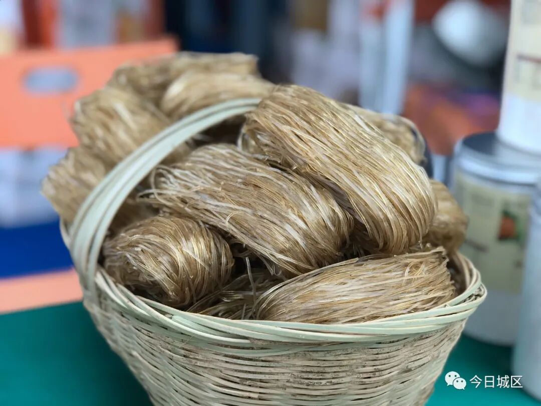沙坑番薯粉签厂是沙坑村的特色产业扶贫项目,不仅每年能增加10万元的集体收入,还能为村民提供一定的就业岗位。图为沙坑村生产的番薯粉签。