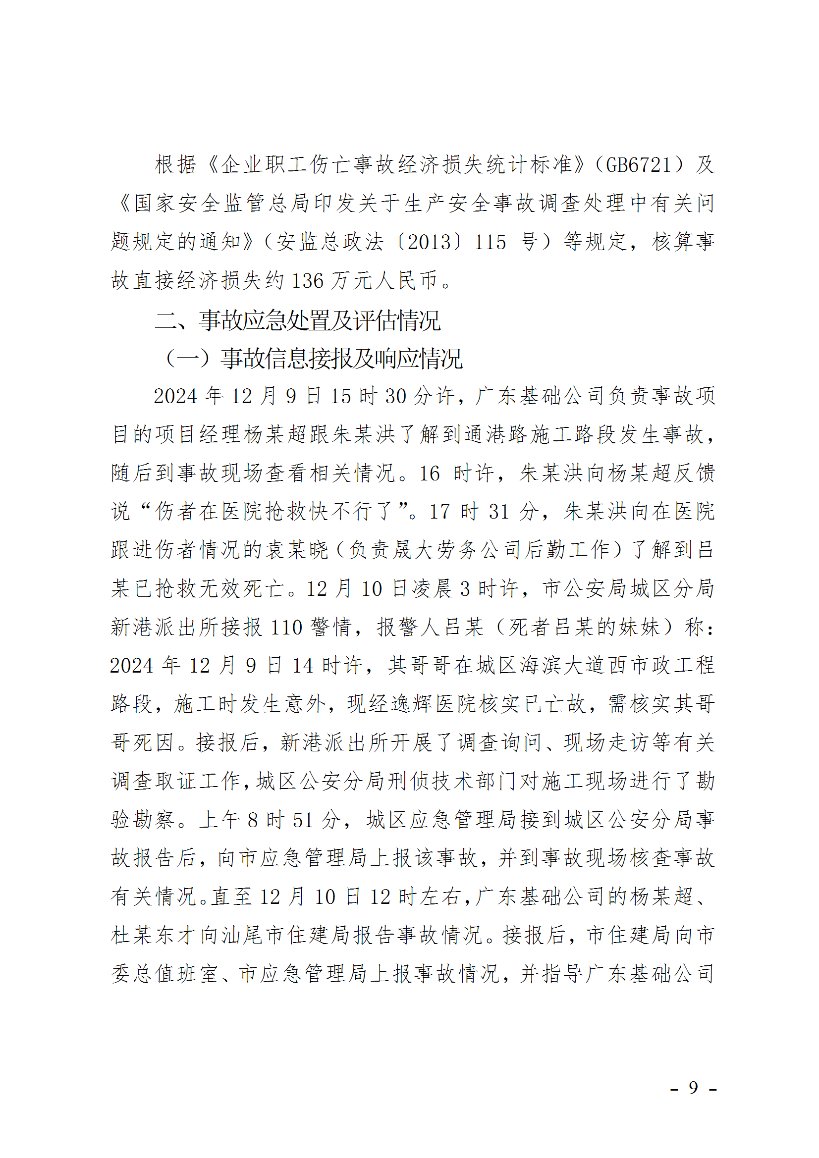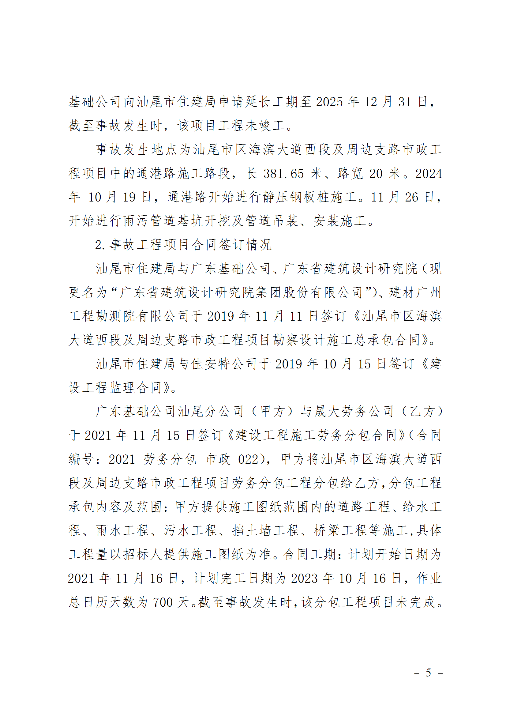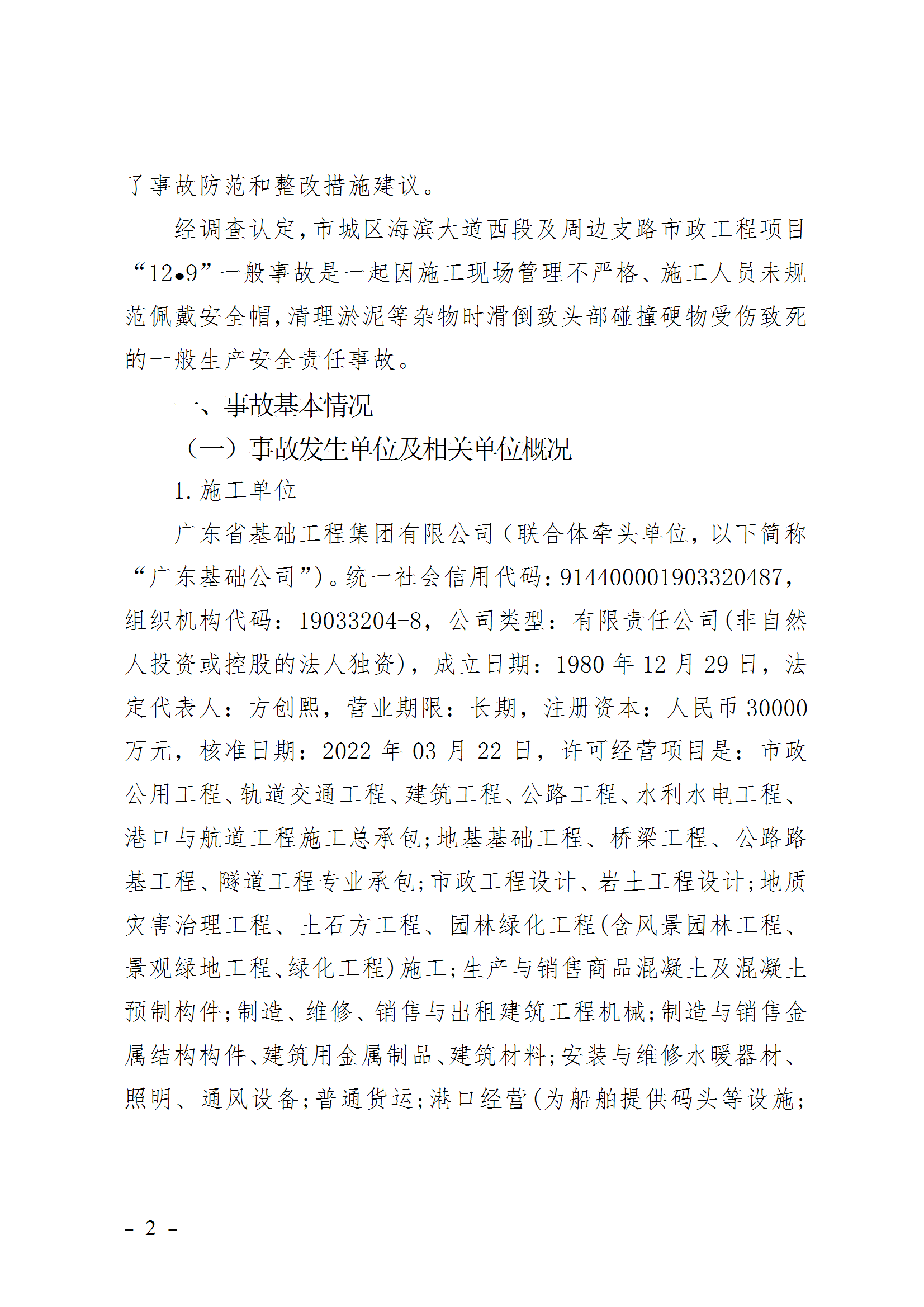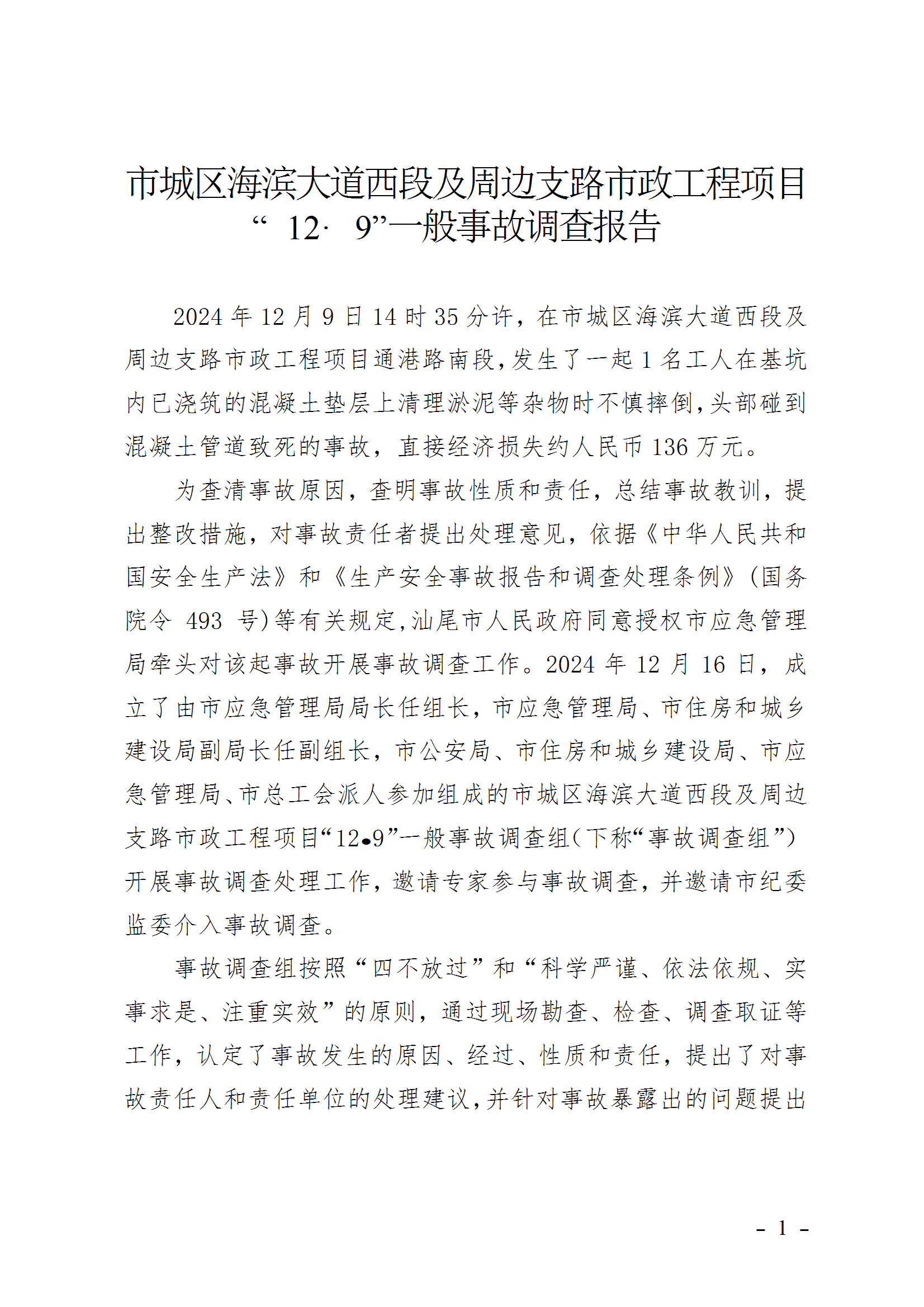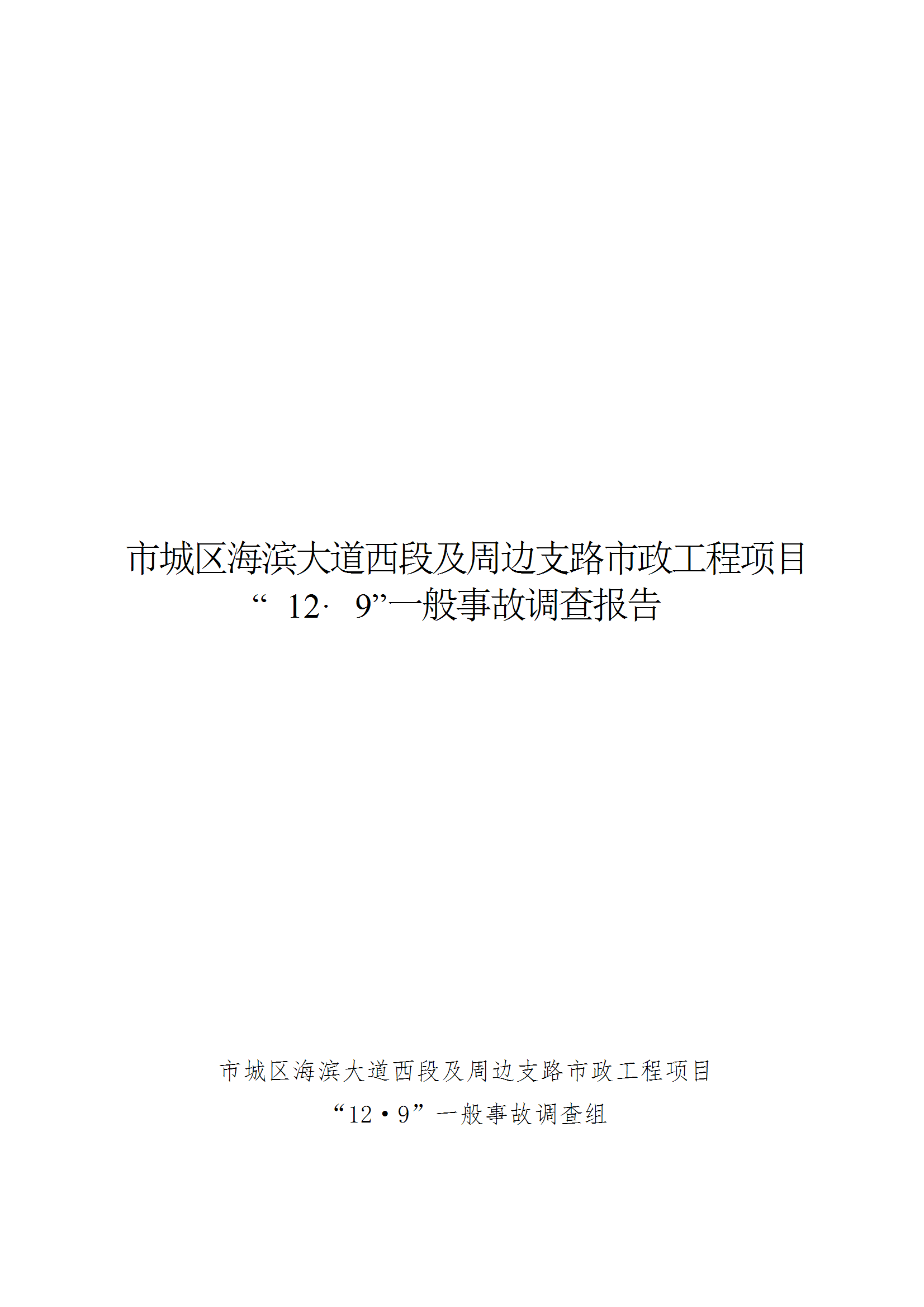 市城区海滨大道西段及周边支路市政工程项目“12·9”一般事故调查报告