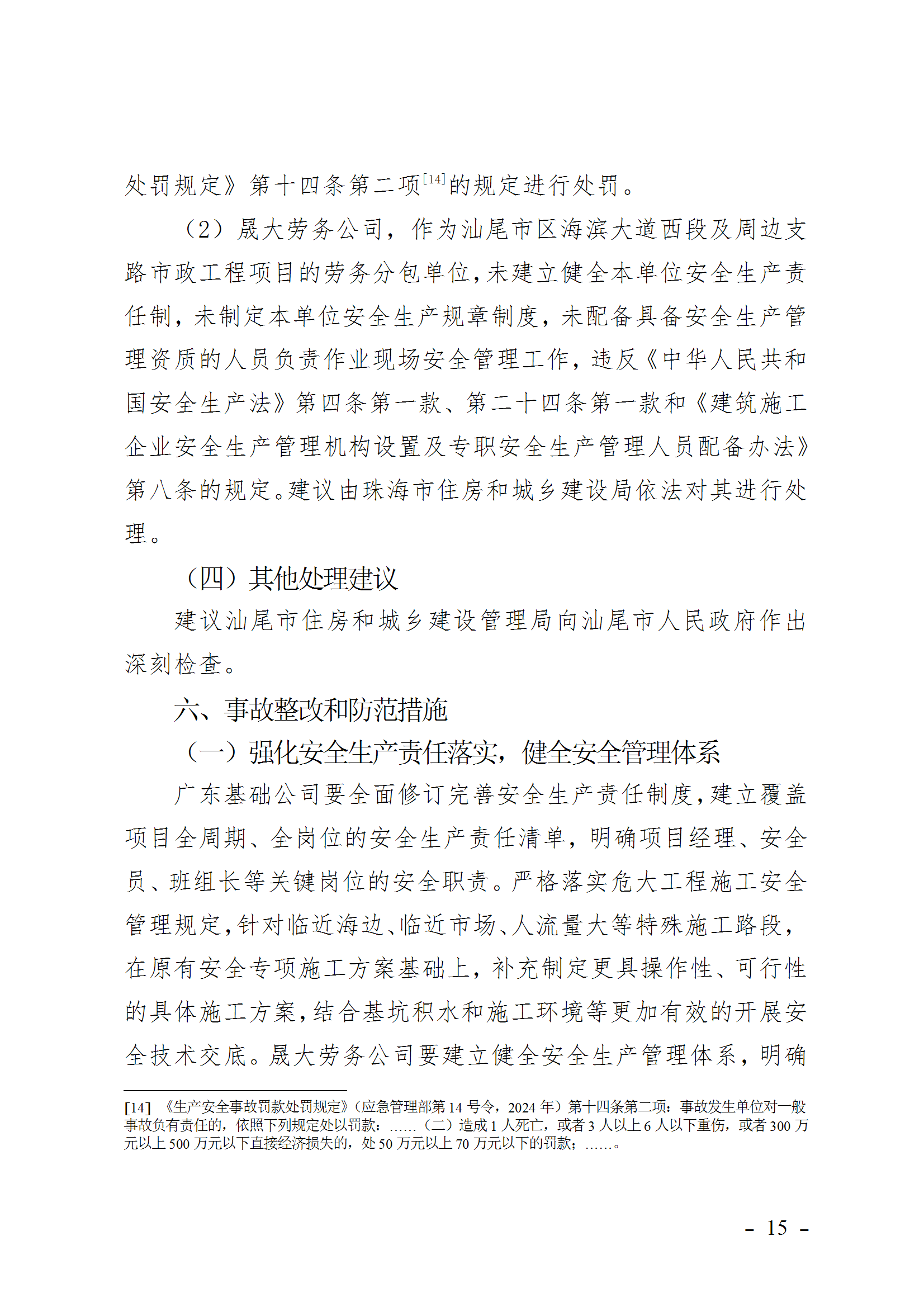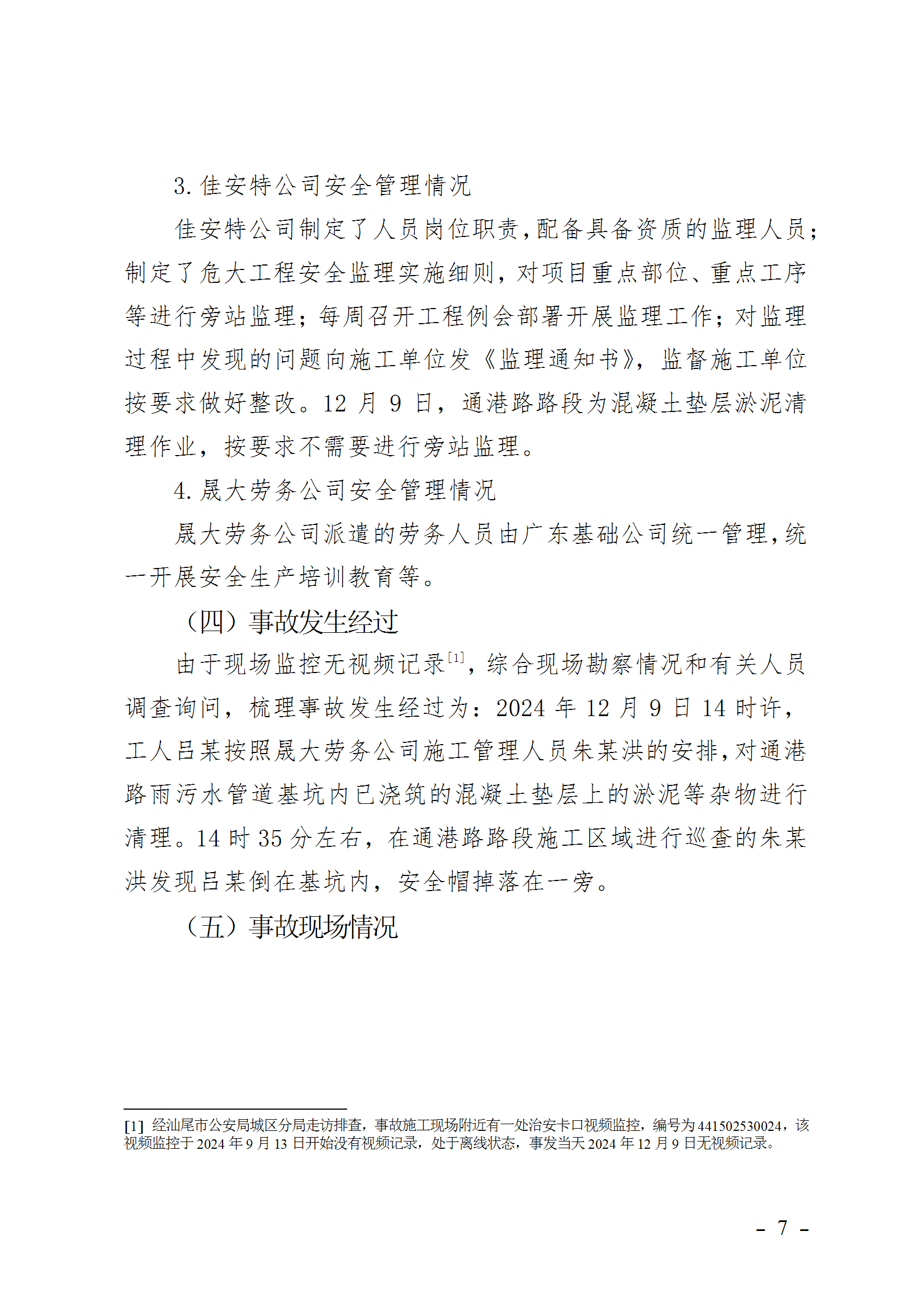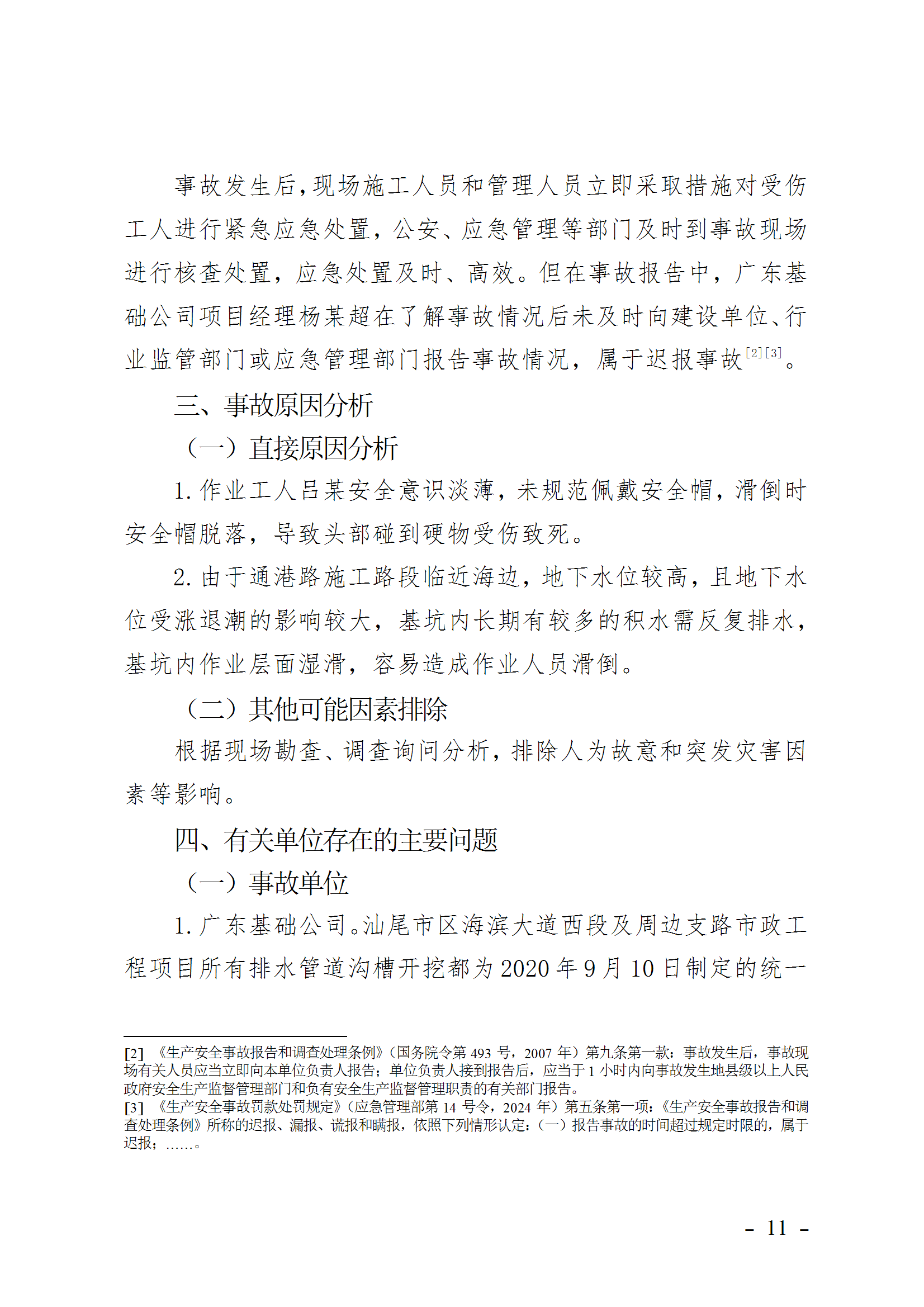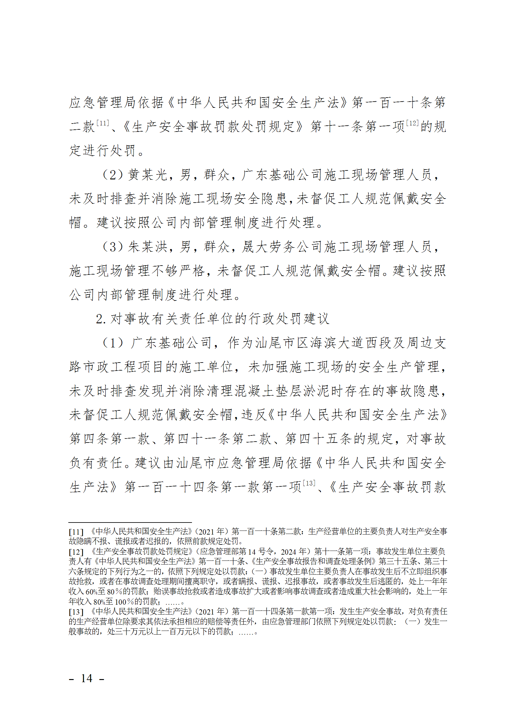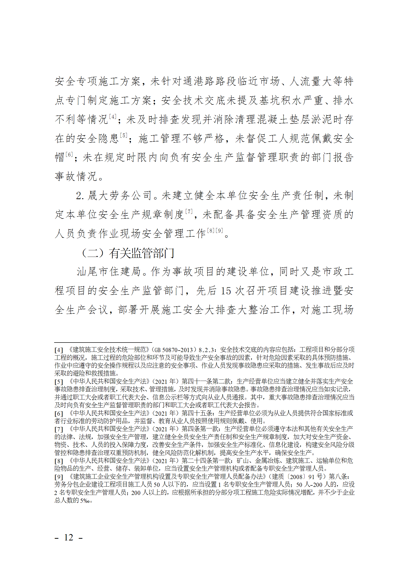 市城区海滨大道西段及周边支路市政工程项目“12·9”一般事故调查报告
