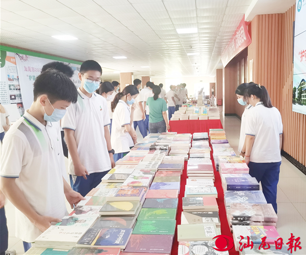 华师附中汕尾学校学生在查阅相关宣传资料。
