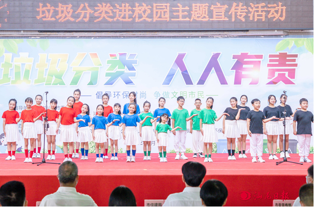 主题宣传活动现场。 汕尾日报记者 施辰亮 摄 汕尾日报讯 (记者 陈晓铭)“善美家园,处处都唱响讲文明干净卫生好风尚,分类在指尖,文明在心间,善美好山好水好风光……”6月26日,以“垃圾分类 人人有责”为主题的垃圾分类进校园宣传活动在市实验小学举行。活动旨在深入学习贯彻习近平总书记对垃圾分类工作的重要指示精神,践行“垃圾分类就是新时尚”的绿色环保理念,提升学校垃圾分类意识,进一步推动师生垃圾分类习惯养成。 一曲童声合唱《垃圾分类我做起》拉开活动帷幕。接着,歌曲《善美家园》、魔术《变废为宝》、男女声二重唱《呼吸蓝》、古筝表演、小提琴表演等节目轮番上演。“可回收物蓝色桶,厨余垃圾绿色桶,有害垃圾红色桶,其他垃圾灰色桶,街头巷尾做示范……靓丽明珠真正爽”一段琅琅上口的汕尾方言垃圾分类顺口溜《环保之歌》更是把节目推向高潮,增强学生规范投放垃圾的意识。 节目表演中还穿插了垃圾分类知识问答和垃圾分类比赛互动环节,让学生们在轻松活泼、寓教于乐的氛围中了解垃圾如何分类等相关知识。现场还举行趣味涂鸦和创意绘画活动,学生们围绕活动主题,结合自己日常生活中的观察和学到的垃圾分类知识,用自己的奇思妙想和童心妙笔绘出心中的绿色,让环保的理念在心中生根发芽。 活动中,市住建局有关负责人指出,近年来,我市垃圾分类工作取得长足进步,分类体系建设不断完善,人民群众的环保意识进一步增强。特别是《汕尾市城乡生活垃圾分类管理条例》实施以来,我市生活垃圾分类工作更加制度化和规范化。希望相关部门加大垃圾分类宣传教育力度,从学校抓起,从娃娃抓起,进一步提高每一个家庭做好垃圾分类的行动自觉和习惯养成。 此次活动由市委宣传部指导,市住建局、市教育局、城区政府主办,市公安局、市卫健局、汕尾日报社、汕尾广播电视台协办。