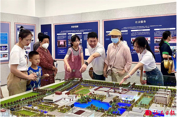 华南师范大学汕尾校区志愿者为来宾介绍校园布局及建设情况。