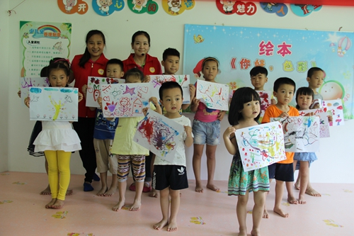 活动分为四个部分:1、为预热气氛,志愿者与孩子们进行“拉着圈圈走走”的游戏。2、志愿者通过唱歌向家长和小朋友们问好,拉近彼此之间的关系,消除彼此的陌生感。3、进入本次活动的主题环节——吹画,小朋友和家长们经过前几个环节已经完全融入到了整个活动当中,在吹画这个环节中大家都十分投入。在家长的陪同下,小朋友们用自己手中五彩缤纷的颜料展现了不同颜色之间神奇的碰撞,大家都创造出了用不同颜色搭配在一起呈现出的不一样的画卷。4、最后家长在完成的作品上署上了小朋友们的名字,并拿着自己的作品与志愿者们进行了合影,记录下了这欢乐的时刻。