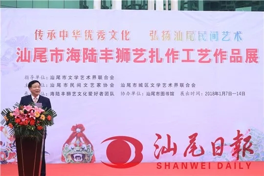 1月7日下午,汕尾市海陆丰狮艺扎作工艺作品展在市图书馆一楼展览厅开展。活动旨在贯彻落实党的十九大精神,坚定文化自信,大力发展推广海陆丰地方特色狮艺扎作工艺,引导传统狮艺文化扎根于人民,激发汕尾本地民间文化创新创造活力,丰富人民群众的精神生活。