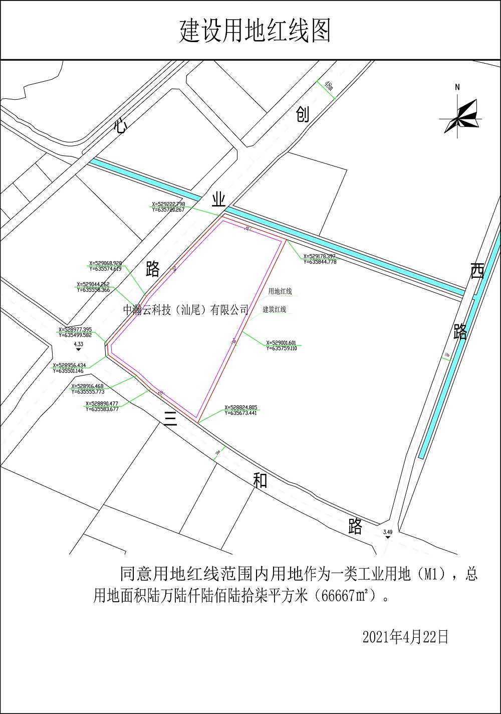 用地位置:汕尾高新区红草园区范围内创业路东侧、三和路北侧。