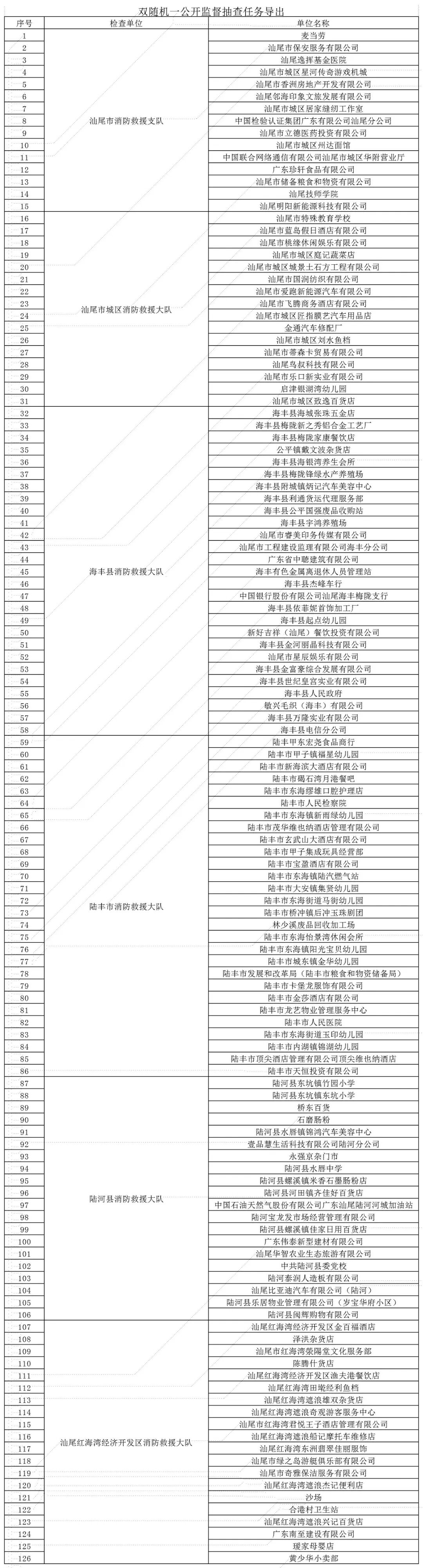 见《广东省消防救援总队“双随机、一公开”抽查事项清单》。