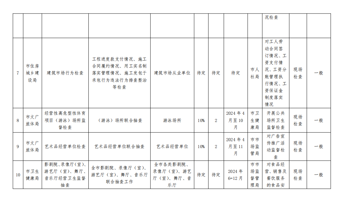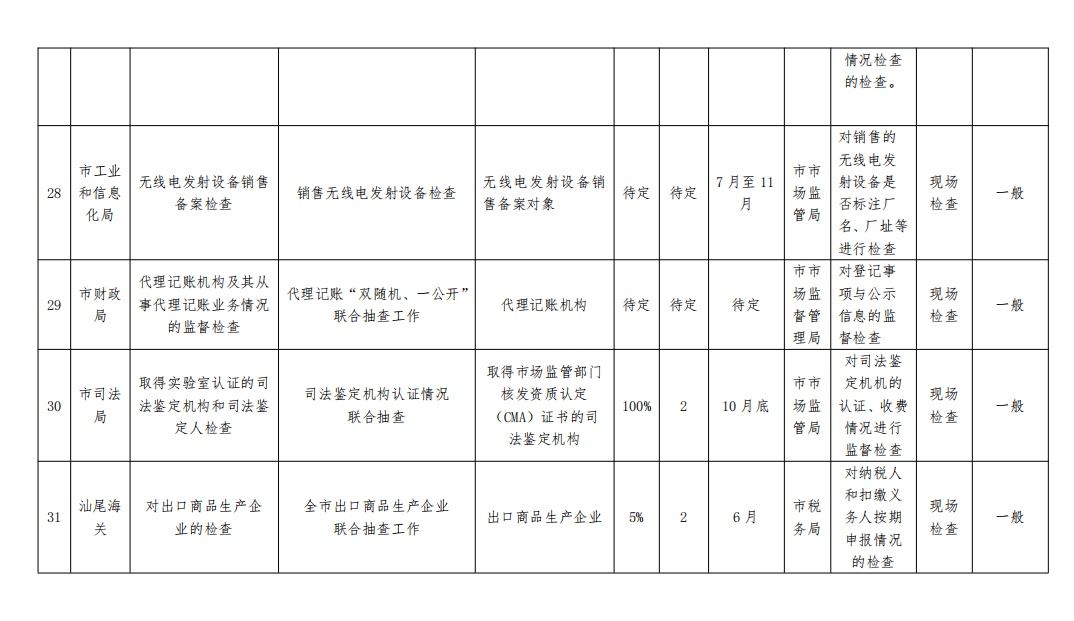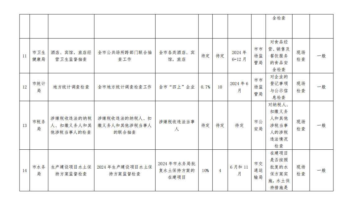2024 年度汕尾市跨部门 “双随机、一公开” 联合抽查工作计划
