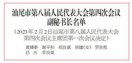 汕尾市第八届人民代表大会第四次会议副秘书长名单(2023年2月2日汕尾市第八届人民代表大会第四次会议主席团第一次会议决定)