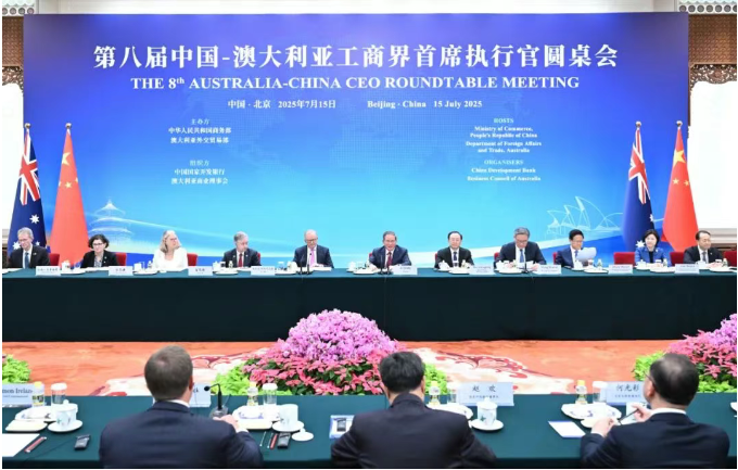 国务院总理李强7月15日晚在北京人民大会堂同澳大利亚总理阿尔巴尼斯共同出席第八届中澳工商界首席执行官圆桌会。近30位中澳商会和企业负责人出席。