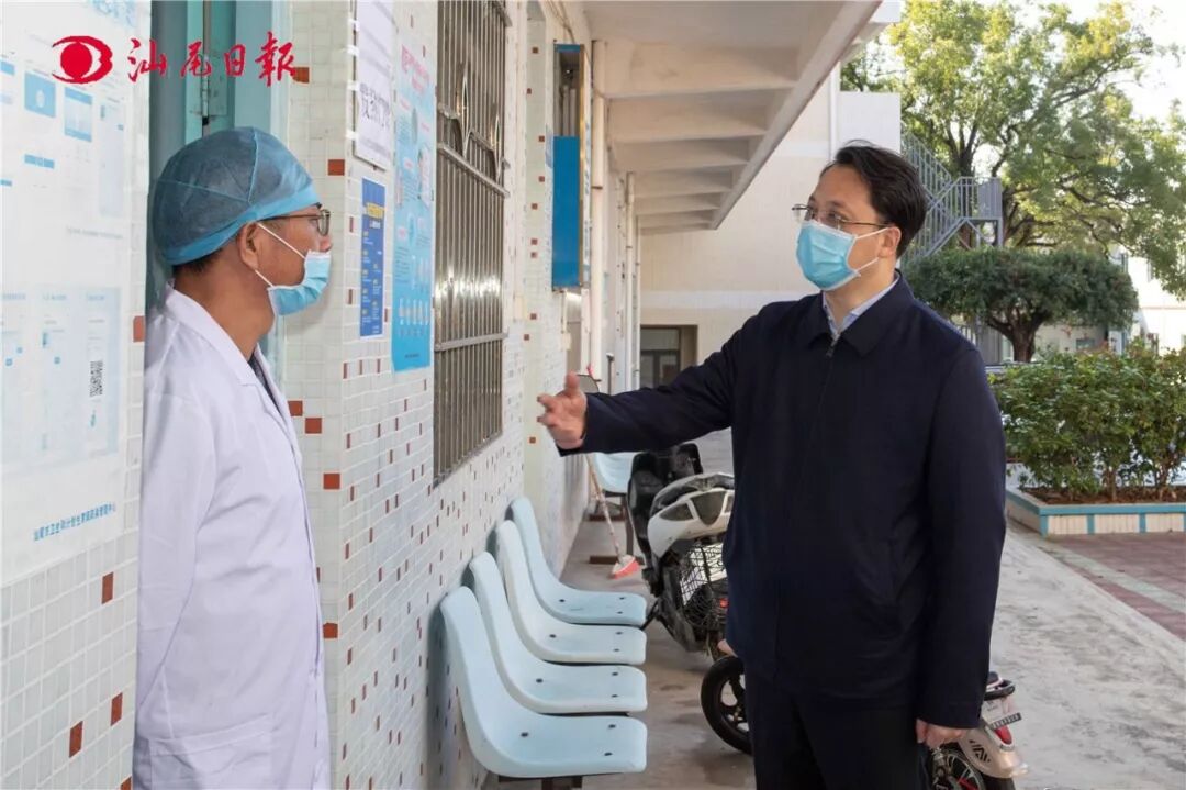 “接诊的发热病人多吗?”“药品口罩紧缺吗?”在海丰县赤坑镇中心卫生院,张晓强向医护人员了解发热门诊登记、医务人员值守和防疫物资储备等情况,嘱咐他们按照规范的流程做好群众就医服务和指引。随后,他前往海丰县赤坑镇疫情防控指挥部,了解该镇防疫工作情况。“疫情发生后,全镇网格员迅速行动,开展入户走访,宣传防疫知识,组织群众签订承诺书,对排查出的外来重点人员和发热人员登记造册,对8人实施隔离观察措施,镇政府为他们提供基本的日常生活服务保障。”赤坑镇负责人介绍道。张晓强对该镇防控工作表示肯定,要求进一步运用好“大数据+网格化+主动监测+群众路线”四轮联动机制,以更加务实管用的措施做细做实防控各项工作,防止流于形式,坚决杜绝漏管失管,切实把风险隐患发现在早、处置在小。