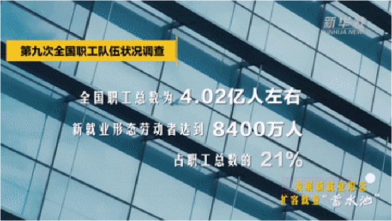 近年来,新技术、新产业、新业态、新模式不断发展,创造了大量新就业形态岗位,有效拓宽就业新空间,促进高质量充分就业。第九次全国职工队伍状况调查结果显示,全国职工总数为4.02亿人左右,其中新就业形态劳动者达到8400万人,占职工总数的21%。