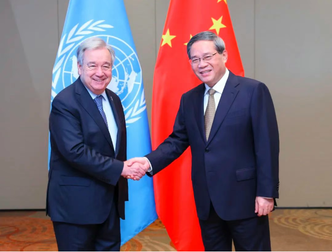 当地时间7月8日,国务院总理李强在里约热内卢会见联合国秘书长古特雷斯。