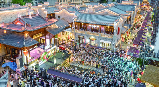 7月25日,游客在湖北省襄阳古城管家巷文化休闲街区观看星光音乐会。 新华社图