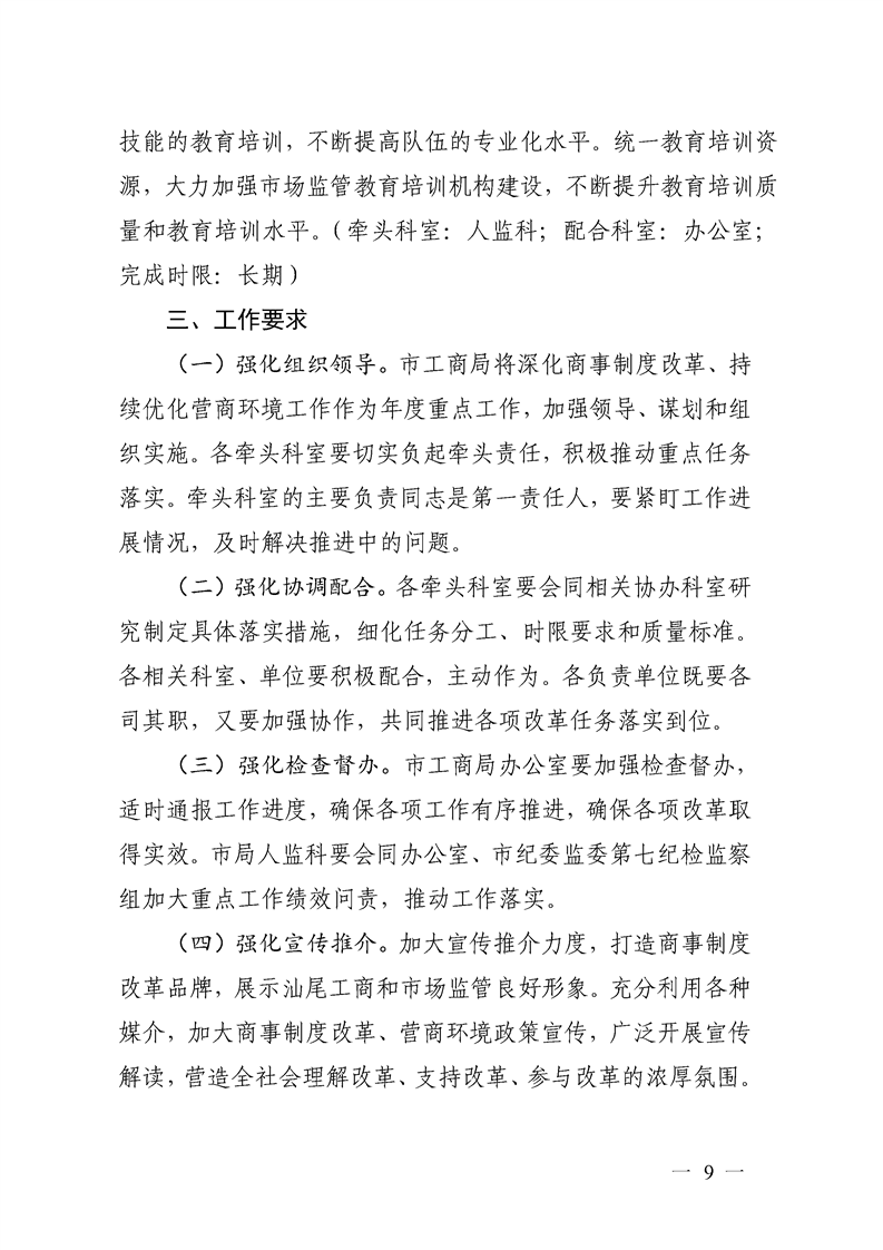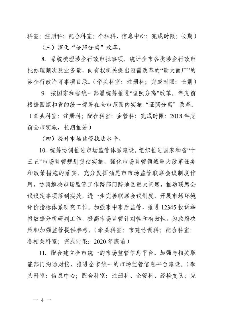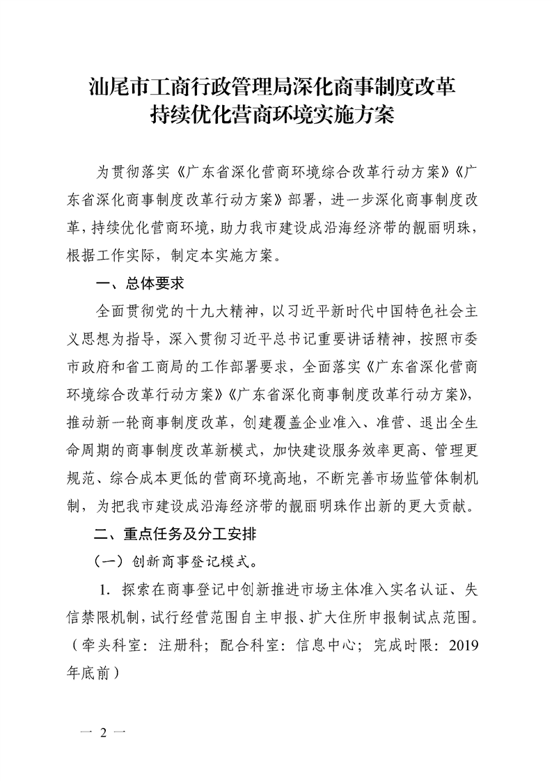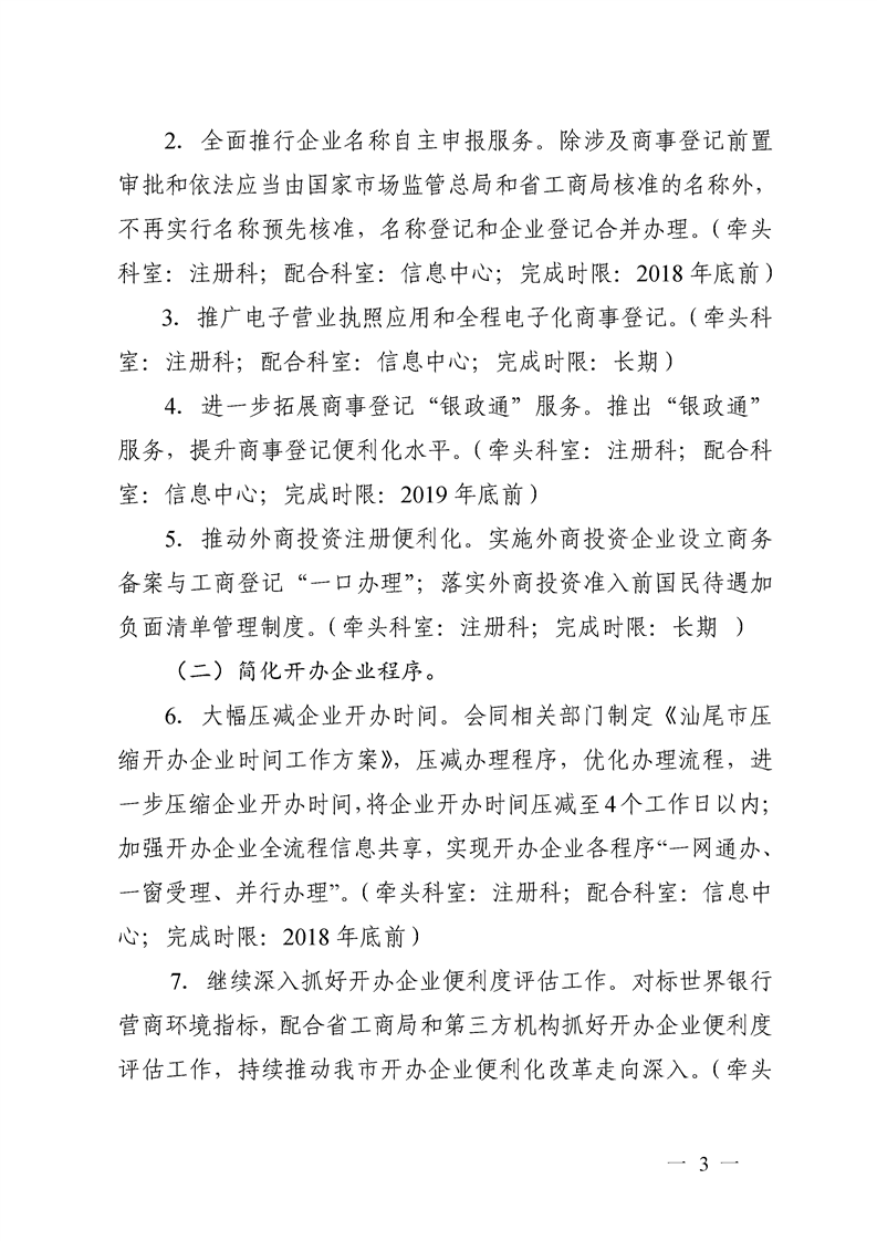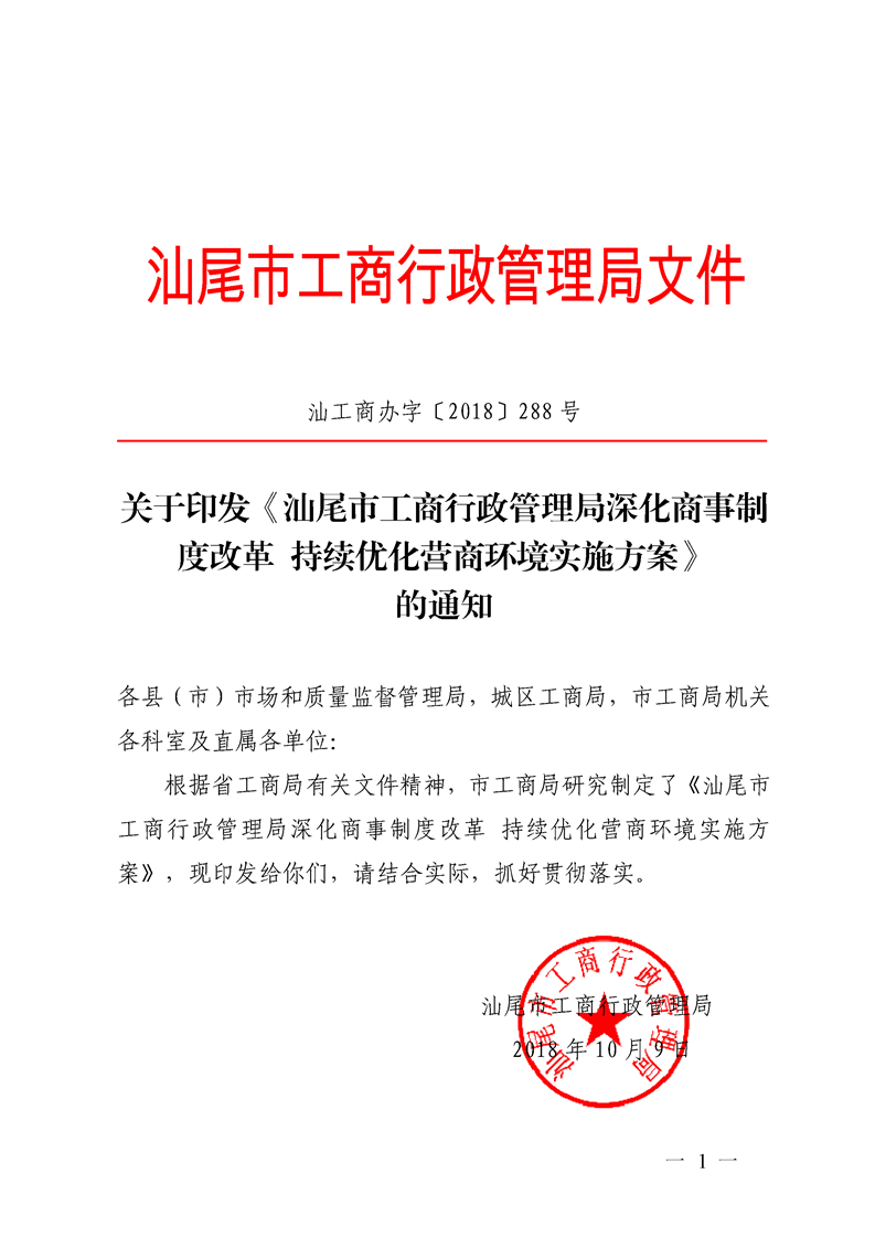 关于印发《汕尾市工商行政管理局深化商事制度改革 持续优化营商环境实施方案》的通知