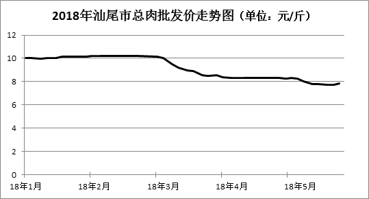 2、总肉批发价:受猪价上升影响,本周我市总肉批发价也有所反弹,但升幅不大。总肉批发价为7.9元/斤,比上周略涨1.7%,与去年同期相比,下降了25.5%。