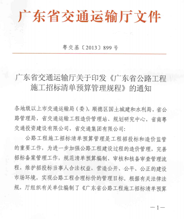 广东省交通运输厅关于印发《广东省公路工程施工招标清单预算管理规程》的通知