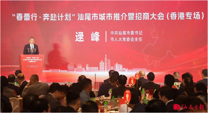 为深入贯彻落实全省“新春第一会”精神,以“起步冲刺、开局领跑”的精气神,推动“百县千镇万村高质量发展工程”、绿美汕尾生态建设开拓全新战绩、取得更大成果,2月26日至27日,汕尾市“春蕾行·奔赴计划”城市推介暨招商大会在香港召开。会上,市领导与广大旅港乡亲欢聚一堂,共叙乡情友谊,共话汕尾发展。市委书记、市人大常委会主任逯峰致辞,市政协主席李耿坚通报乡情并作招商推介。