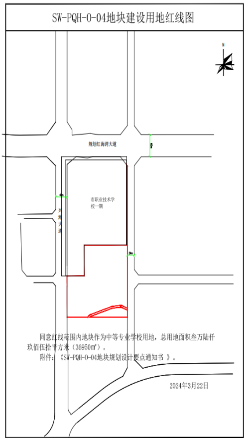 经市用地会审会议审议,拟将位于市区兴海大道东侧一幅面积为36950㎡的国有建设用地划拨安排给汕尾市职业技术学校作为汕尾市职业技术学校二期工程教学楼和文体中心建设用地。现拟核发该用地的建设用地规划许可证,依照《广东省城乡规划条例》第二十九条的有关规定,对相关事项公示如下: