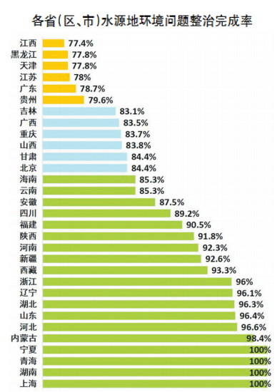 一些地市水源地整治工作相对迟缓。甘肃临夏、江西鹰潭、安徽阜阳、新疆阿勒泰、广东河源、江苏扬州等6个地市任务完成率低于50%