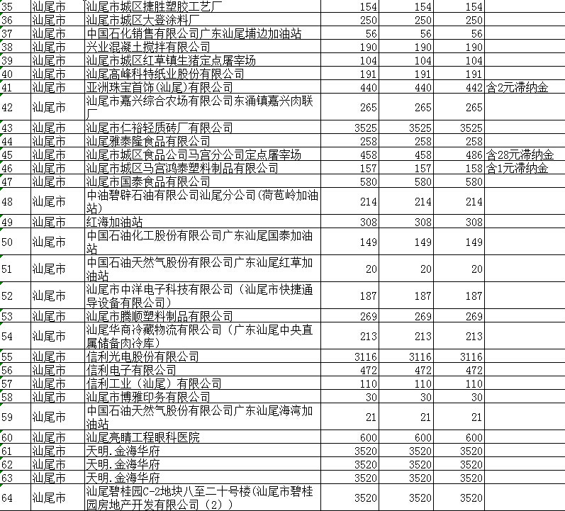 2016年01 月至03 月排污费开单入库公示(第一季度)